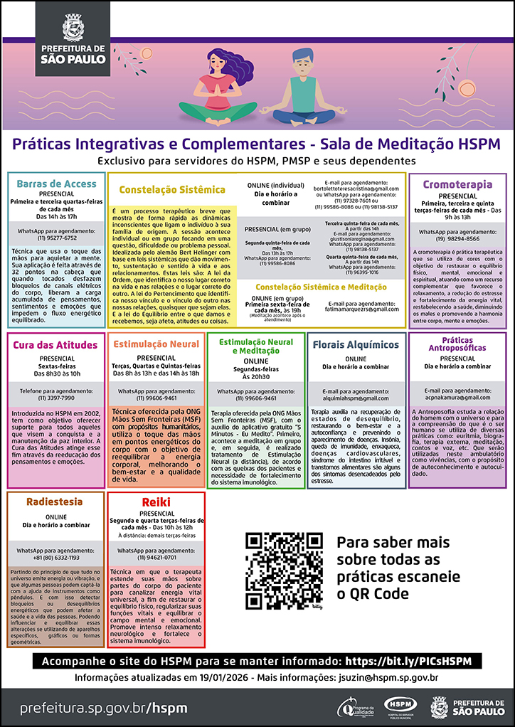 Estas práticas visam auxiliar o tratamento médico clássico oferecendo alternativas às pessoas de forma integral.