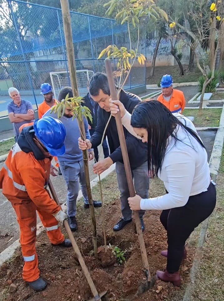 A Subprefeitura de Sapopemba, realizou na manhã do último sábado (30/11), o plantio de mudas de Ipê — árvore nativa e símbolo da flora brasileira, na praça localizada na rua Chiquinha Gonzaga, no distrito de Sapopemba. A ação contou com a presença do secretário municipal das Subprefeituras, Fabricio Cobra, da subprefeita de Sapopemba, Dida, e do chefe de gabinete da Sub, Matheus Brito.