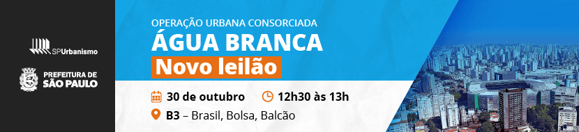 A Prefeitura de São Paulo, por meio da São Paulo Urbanismo e da Secretaria Municipal de Urbanismo e Licenciamento (SMUL), realiza no dia 30 de outubro de 2025 o 2º Leilão da 2ª Distribuição Pública de Certificados de Potencial Adicional de Construção (CEPACs) da Operação Urbana Consorciada Água Branca (OUCAB).